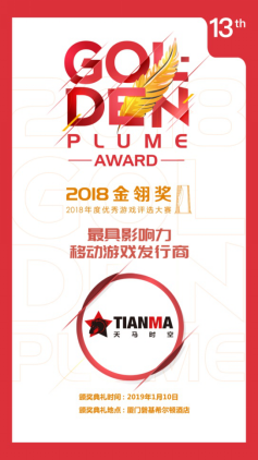 天马时空于2010年创立,并在2014年推出首款MMORPG手游《全民奇迹MU》,一举成为年度划时代现象级产品,天马时空也从而迅速跻身手游行业的领先者行列。2015年,天马时空加入九游娱乐集团,立足于国内市场的同时积极布局海外,秉持着精品化研发与专业化发行一体化理念,致力于为玩家持续贡献出好玩的高质量游戏。2018年1月由天马时空研发,腾讯独家代理运营的3DMMORPG魔幻大作《奇迹MU:觉醒》一经上线迅速进入iOS双榜前三,全球收入榜单前10。2018年2月,天马时空自主发行的首款游戏《大掌门2》亦取得傲人成绩。基于后续多款优秀产品研发与发行的战略布局,天马时空已然成为中国游戏业界内最具综合实力的研发与发行一线厂商之一。本次获奖,可谓是实至名归。