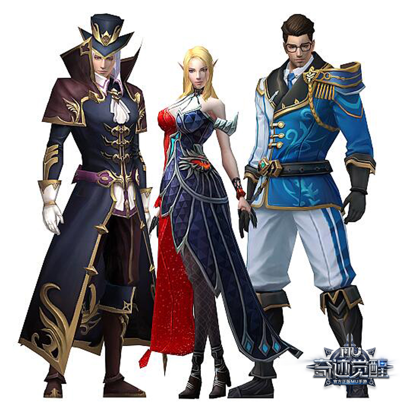 新时装,从风格来看属于欧式宫廷风,给人第一印象就是优雅、古典以及奢华。服饰以华丽的白、蓝、黑等带有宗教意义的色彩为主,在装饰纹样上,则采用了复古骑士风格的金属配饰融入,让服装在极尽华美的同时,温婉里不乏英气,强大,却又不会过于强势。