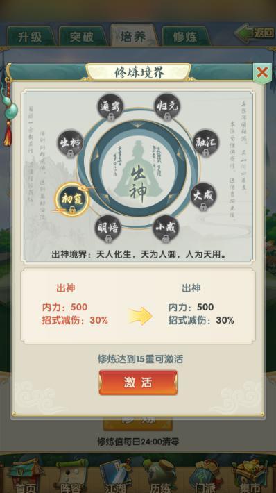 无论是武林新秀,还是江湖老饕,境界都是衡量强弱的关键。在《大掌门2》中,各位掌门便可以通过修炼来提升境界,让战力不断飞跃。从根基未稳,到似悟、初窥、小成,再到觉窍、出神。随着境界的一步步提升,境界对掌门和弟子的属性提升也将逐渐增强。同时,境界的高低还能全面提升内力或招式减伤,进而直接决定战斗成败。