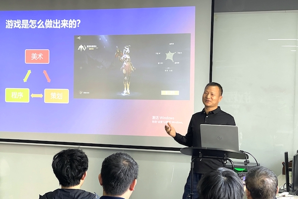 “AI 游戏创作平台会涉及智能NPC间的互动,会涉及NPC和物体的互动吗?”“AI 游戏创作平台所展现的 3A 渲染品质,需要多高的硬件门槛?”“基于模型训练的数据集的来源都有哪些?”在问答交流时间,同学们围绕 AI 游戏创作平台纷纷抛出了专业问题,场面十分热烈。