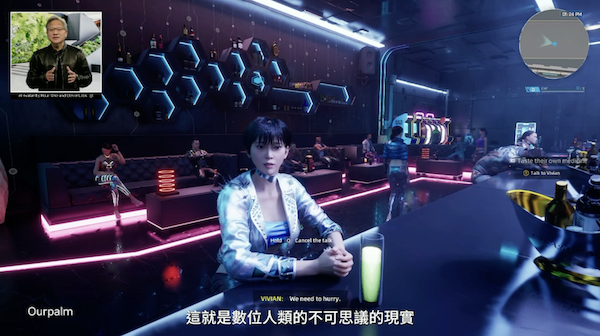借助 NVIDIA Audio2Face 和 DLSS 等尖端技术,AI NPC 根据玩家的实时语音和语调,呈现出逼真、流畅的即时反馈,动作和表情也显得非常自然。互动过程中,周围环境生态运转自如,光影变化细腻写实,无论是忙碌的酒保、穿梭于卡座间的服务生还是周围顾客们的低声谈话,都完整展现出整个虚拟世界的生机勃勃和身临其境般的沉浸感。